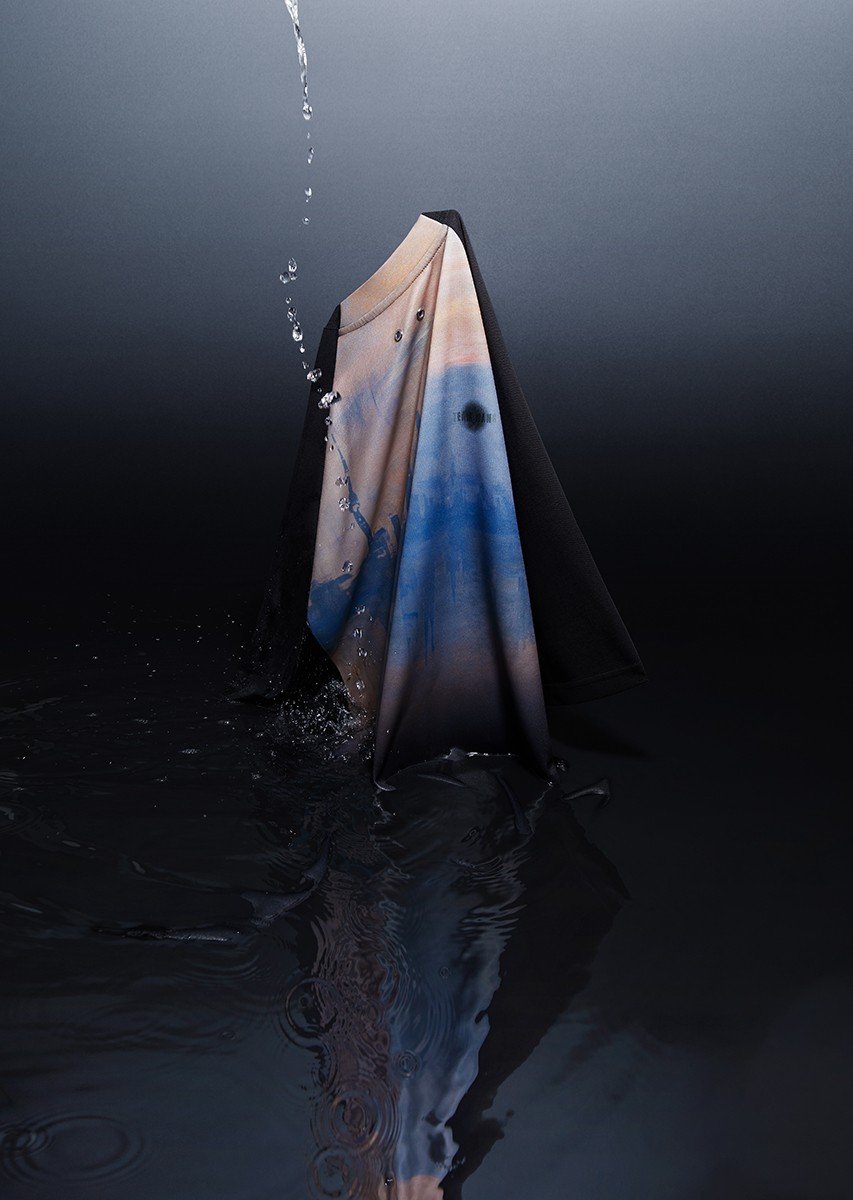 The intersection between art and fashion celebrates the beauty of Impressionist Art in a focus on details. Comprised of a track jacket, utility vest and T-shirt styles, the concise range is built around an abstract print that interprets “Impression, Sunrise.” The water and reflection element of the original artwork stood as the main concept of the print that mirrors the cityscape of Paris and Shanghai. The TEAM WANG logos on the front of items is also redesigned in a matching gradient color, while eyelets and colors continue the details associated with Jackson Wang’s label.