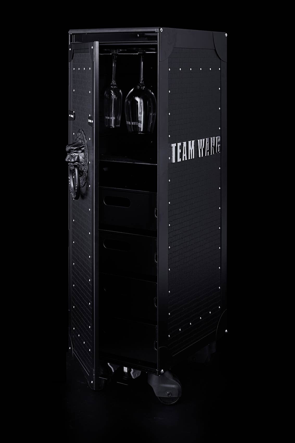 A nod towards a time when air travel was more accessible, “Let your imagination fly” is the message that Jackson Wang wishes to spread during these trying times. The black-clad cart sees a full metal “TEAM WANG” logo across its crocodile-pattern leather, a lion head door knocker, custom glassware (six wine glasses, three champagne glasses, nine beer glasses, and one bottle opener), and are each individually numbered.