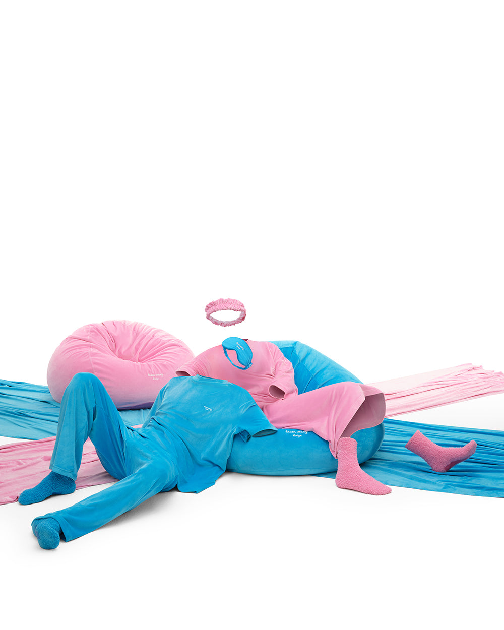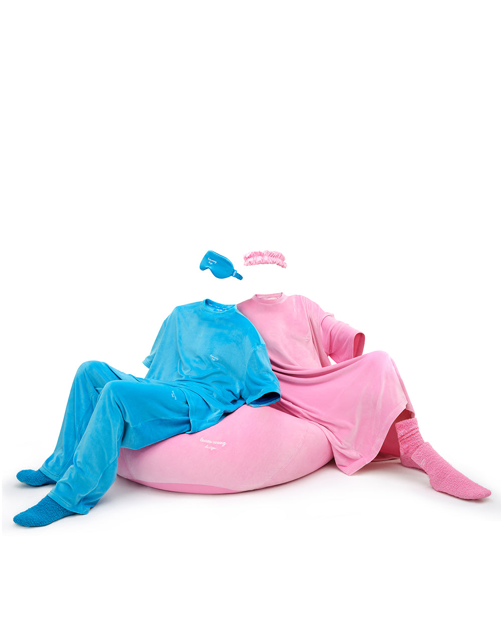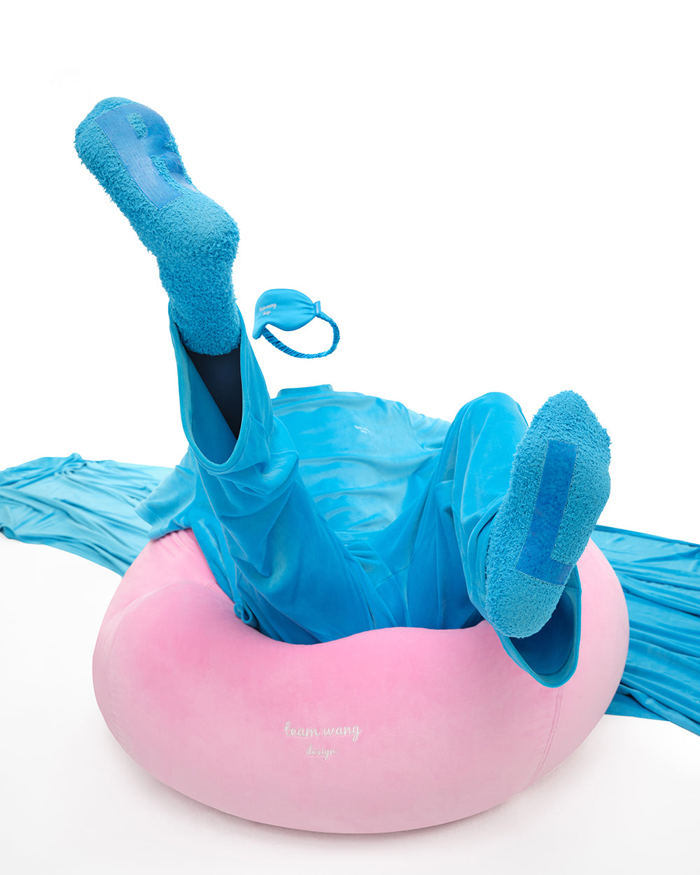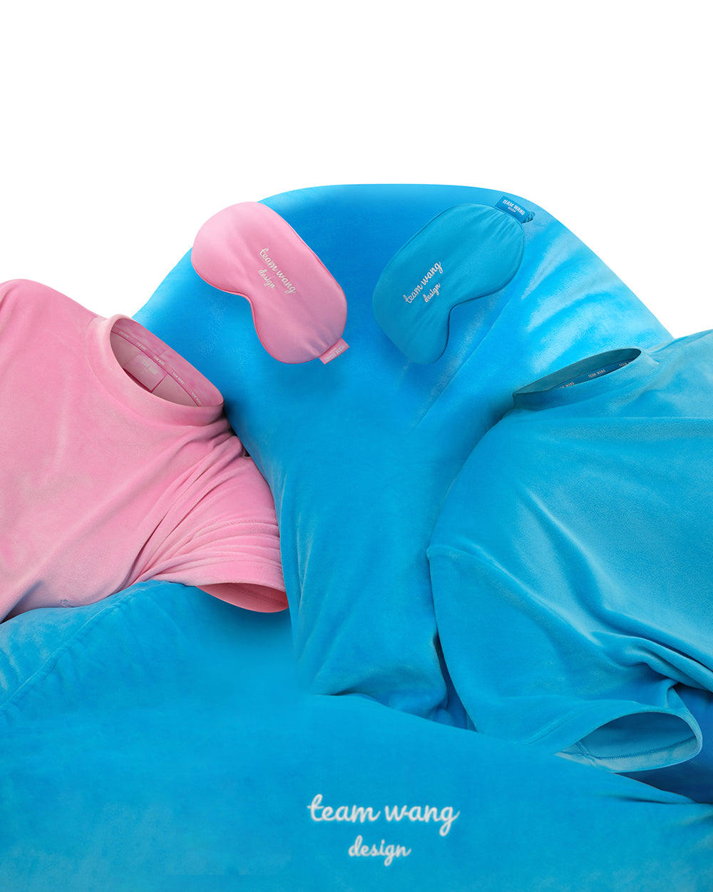 The super oversized style also creates a sense of spontaneity and leisureness in the embrace of the night. On top of that, STAY FOR THE NIGHT also brings in a new, lightweight bean bag sofa, as well as eye masks, hair ties, socks, storage bags, and other home collection items. Specifically designed for those cozy nights and twilight hours, this collection brings healing and relaxation into everyone’s homes. Several items in the collection are embroidered with “team wang design” in white handwriting, showcasing the brand’s personality and detailed thinking. Whether it’s the vibrant blue-pink palette, the bright silver EYELET, or the merge of classic and forward designs, TEAM WANG design has fabricated a comforting atmosphere for the night.
